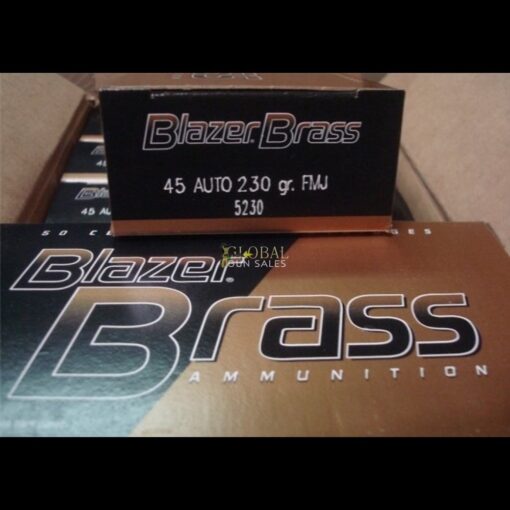 1000 cci .45 acp ammo for sale, 1,000 rounds of CCI Blazer Brass .45 acp New Brass Jacketed FMJ Full Metal Jacket 230 grain New ammunition. This CCI Blazer Brass Ammunition, Product code #5230 is New commercial Brass cased FMJ .45 acp ammunition. This is packaged 50 rounds per box, and 20 boxes are included in this auction, for a total of 1,000 rounds. You will receive 20) 50 round boxes of New Brass cased CCI commercial factory new FRESH ammunition. Each round is brass cased, non-corrosive, and has a 230 grain Full Metal Jacket .45 acp bullet. This ammunition is of current manufacture, by CCI, Product Code #5230.